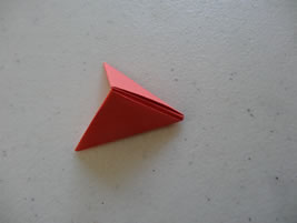Cierra la ranura inferior del triángulo A y dobla el módulo por la mitad, de izquierda a derecha, para que quede finalmente de esta forma.