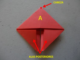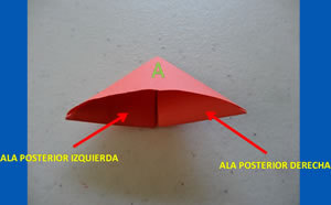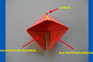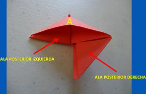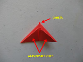 Desdobla las alas posteriores hacia abajo. En la figura se forma un triángulo que llamaremos A.