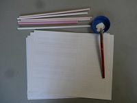 Toma el popote y una de las hojas de papel. Pon pegamento sobre toda la hoja. Coloca el popote en un borde del largo de la hoja y enrolla la hoja en el popote. Fíjate que no quede chueca ni que haya partes sin pegar.